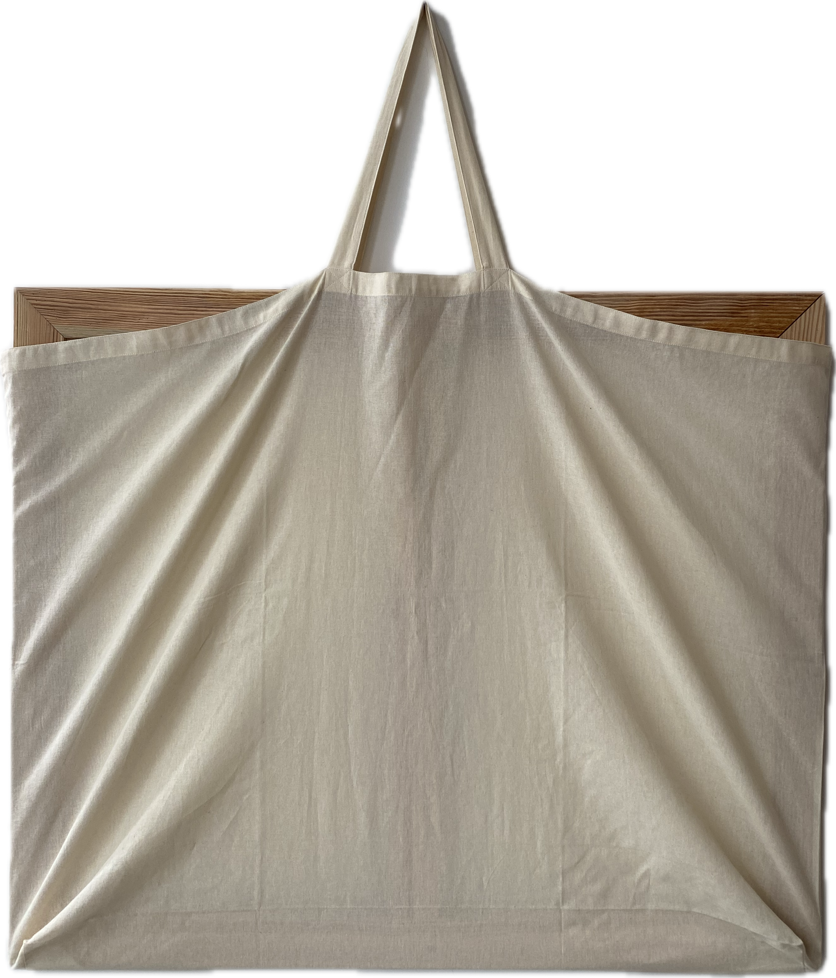 TakeAway / 2025 / 113 x 99 cm / tote bag, wooden stretcher